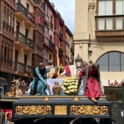 Die Kirche und eine von vielen Kreuzwegstationen auf Sänften die zu Ostern in den Straßen zu finden waren