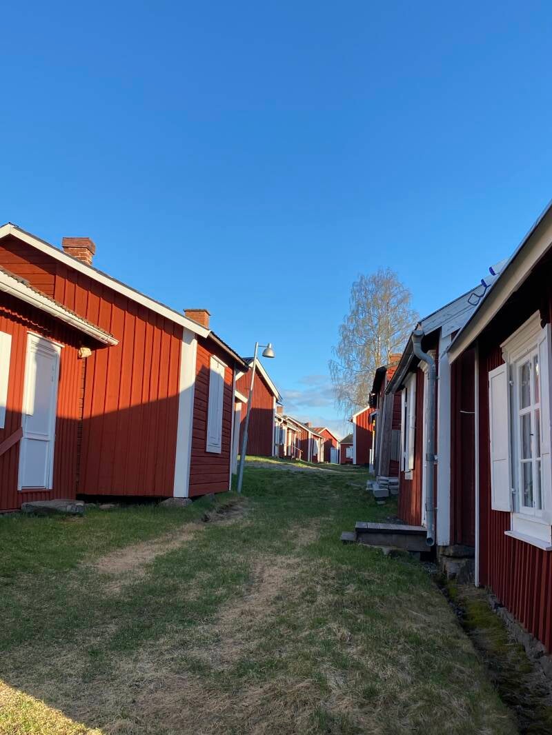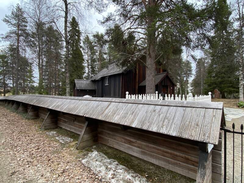 Schweden ist sehr dünn besiedelt, vor allem hoch oben im Norden. Wer zur Kirche gehen wollte (oder musste, denn das war damals Pflicht), hatte oft große Wege zurückzulegen. Damit das möglich war, bauten sich die reicheren Bauern kleine Häuschen und Stallungen um die Kirche herum. So konnten sie dort übernachten, den Gottesdienst besuchen und sich anschließend auf den langen Weg nach Hause machen.