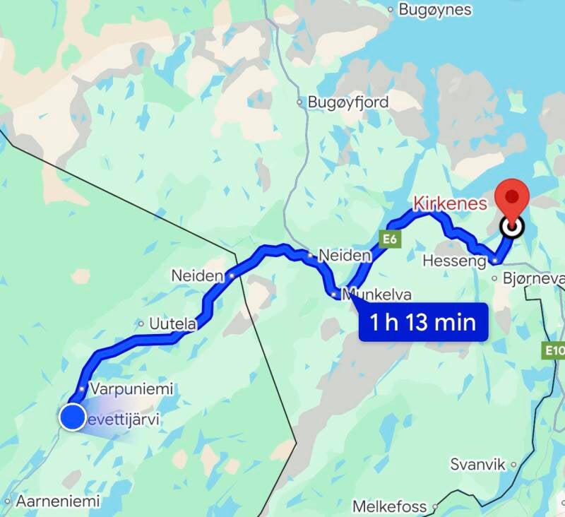 Unser heutiges Ziel liegt ca. 100 km entfernt. Der kleine Fischerort Bugøynes. Bugøynes liegt im Norden der Kommune Sør-Varanger an der Südküste des Varangerfjords, der zur Barentssee gehört.