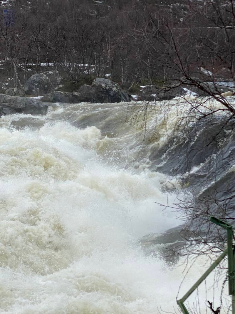Ein gigantisches Naturschauspiel. Man weiß garnicht, wohin man zuerst schauen soll. Zur jetzigen Zeit dürfte das Wasserniveau wohl seinen Höchststand haben. Am Ende der Stromschnellen, wo das Wasser in den Fluss Piteälven mündet, waren noch die letzten Schneereste zu sehen.