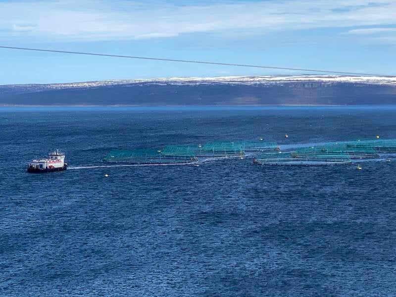 Im Fjord findet man einige von diesen Anlagen. Vermutlich Zuchtanlagen