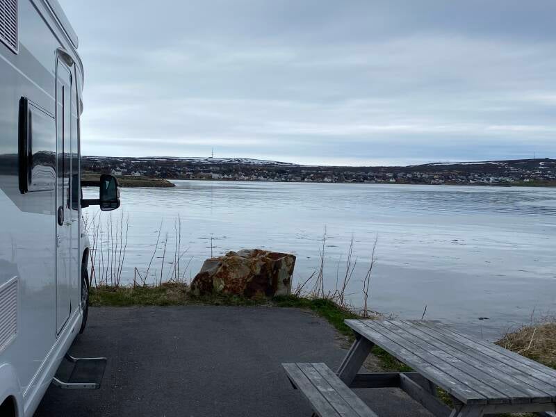 Unser abendliches Lager finden wir direkt am Fjord. Dort stellt die Stadt Vadsø uns einen kostenfreien Platz zur Verfügung, incl. Wasser, Abwasser. Besser geht es nicht.