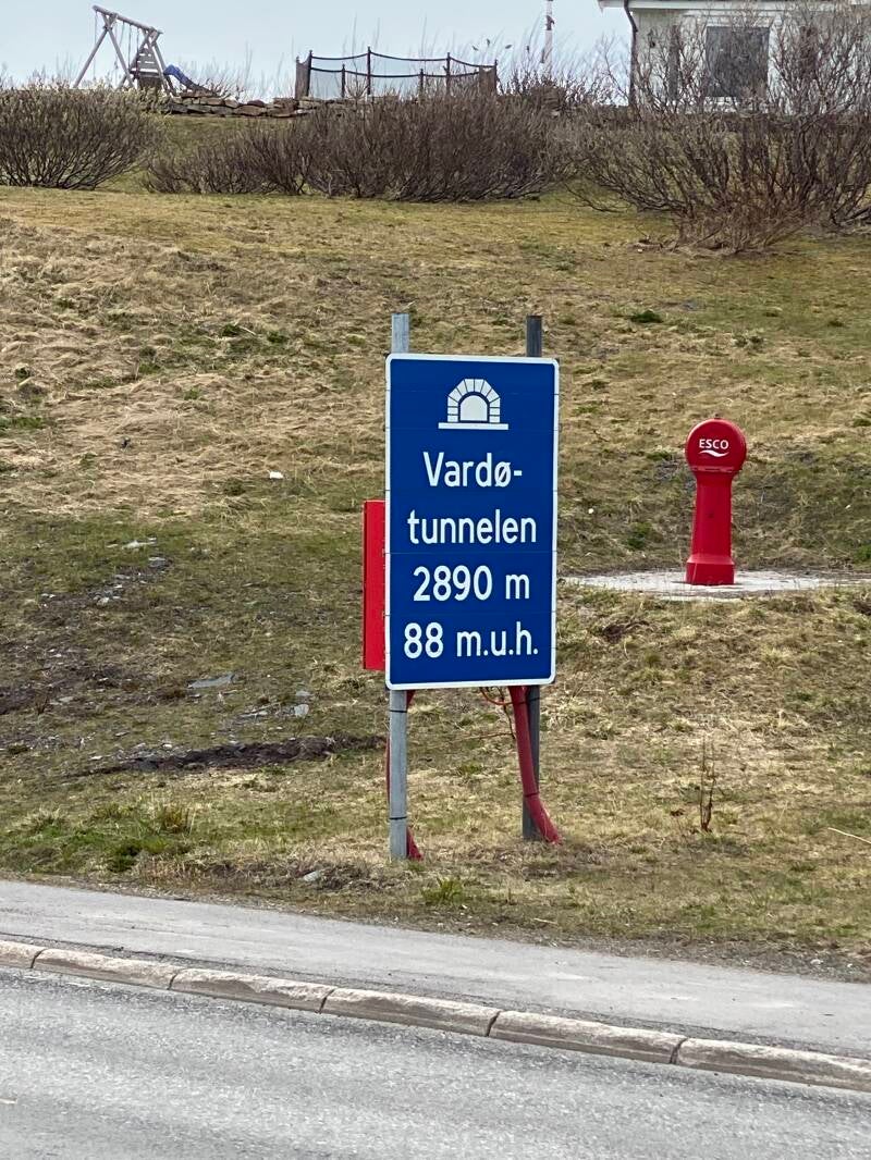 Um nach Vardo zu gelangen, mussten wir durch einen ca. 2,9 Kilometer langen Tunnel fahren. 88 Meter unter dem Meeresspiegel ( Barentssee). Die Ein- und Ausfahrt des Tunnels ist ungewohnt steil.