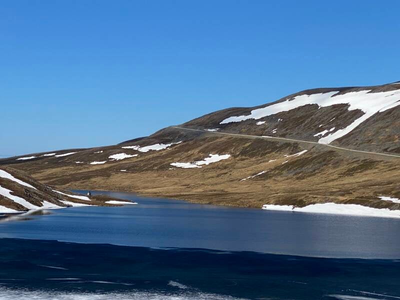 Das Panorama was sich uns zeigte, war einfach atemberaubend. Das hatten wir nicht erwartet. Größere Strecken führten über eine Art Hochplateau, wo noch sehr viel Schnee zu sehen war. An allen Ecken und Kanten rauschte das Schmelzwasser in kleineren und größeren Mengen. Wasserfälle, Bachläufe, auch ob klein oder groß.