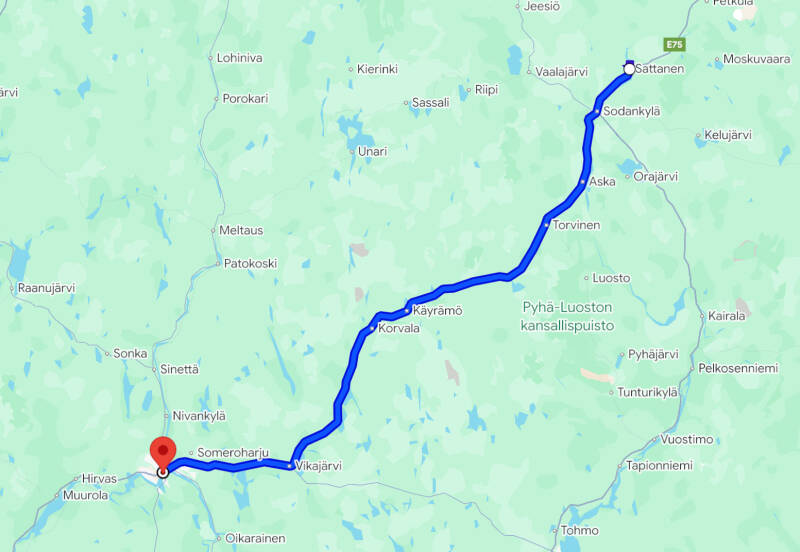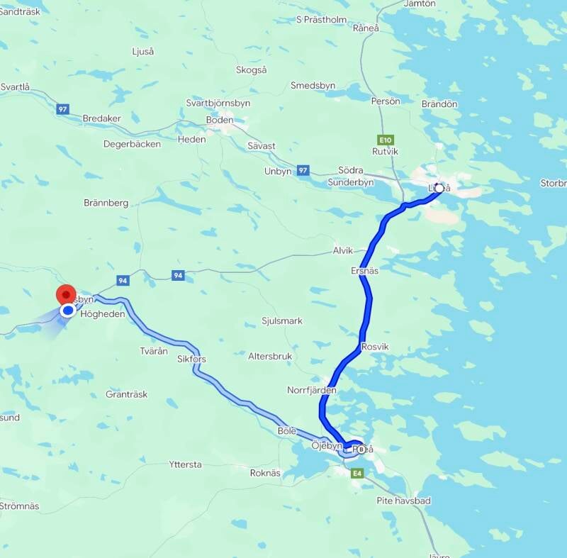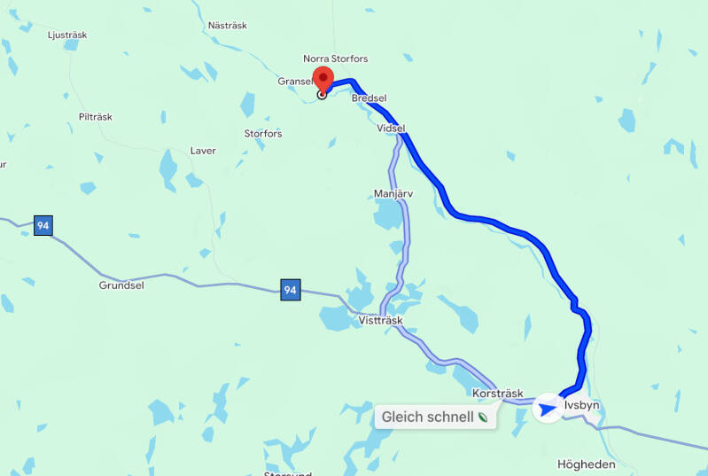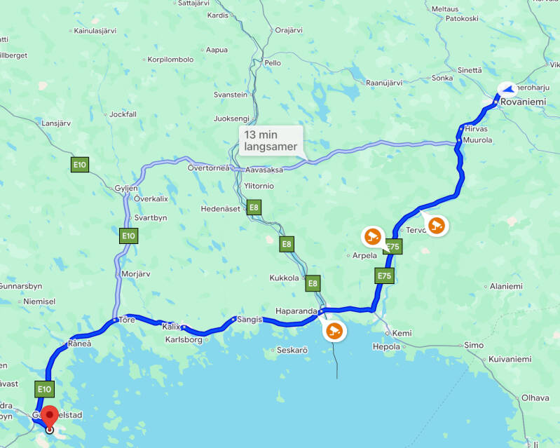 Die Fahrt geht von Lulea, über Haparanda (dort ist der Grenzübergang zu Finnland), nach Rovaniemi. Hier werden wir den Polarkreis überqueren.