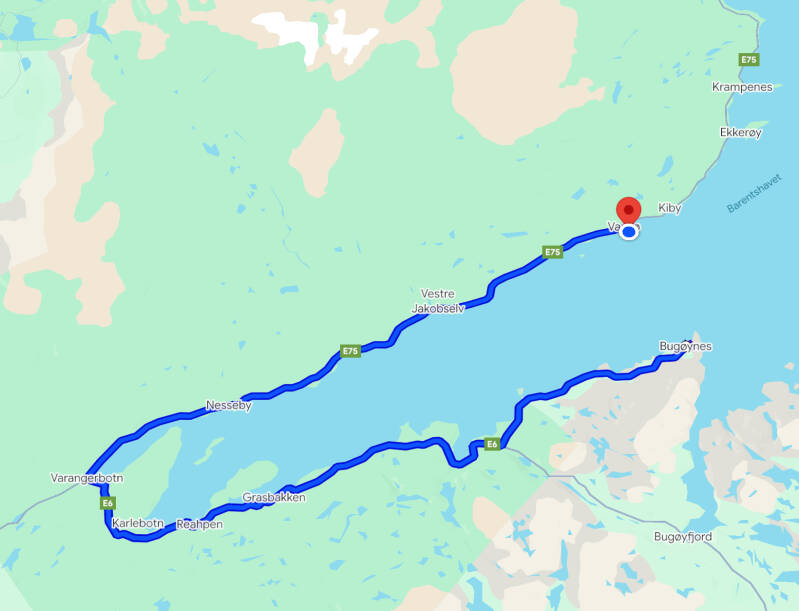 Die Stadt liegt am Varangerfjord, der in die Barentssee im Arktischen Ozean mündet.