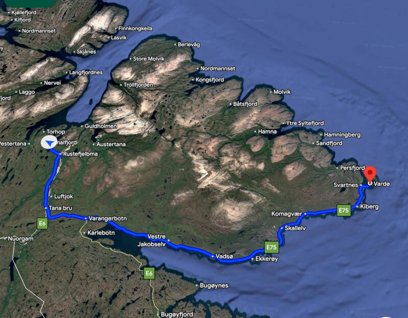 Weiter geht`s nach Vardø. Zugleich unsere östlichste Stelle in Norwegen. Am nächsten Tag müssen wir den Weg entlang des Fjords zurück.